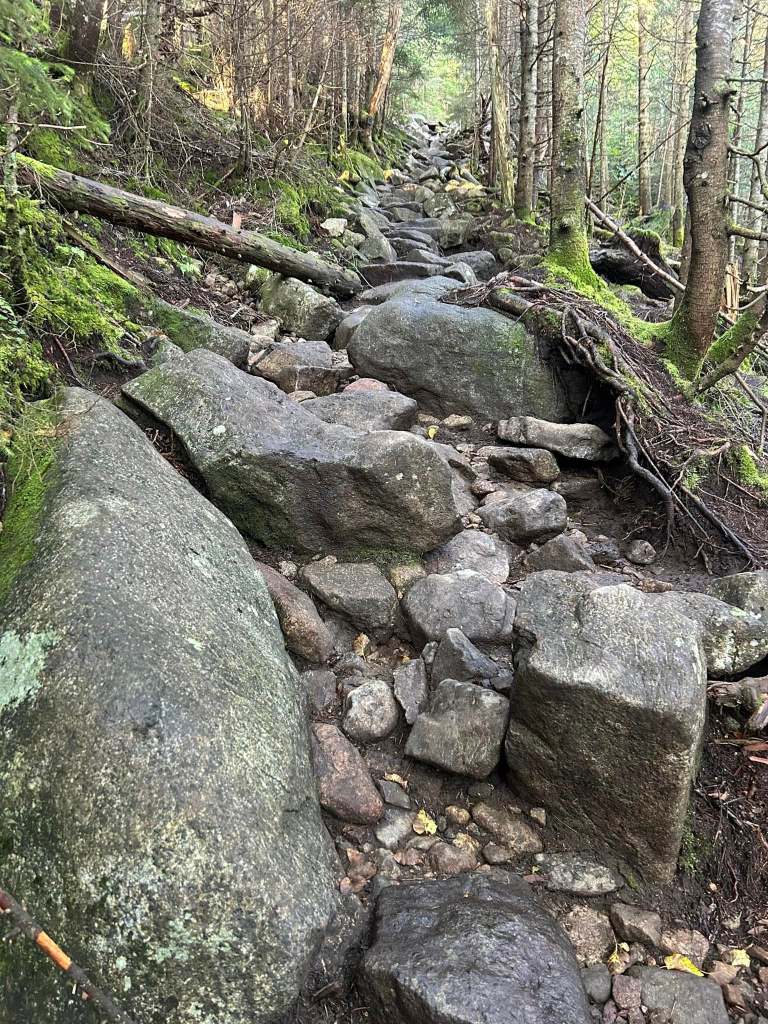 Algonquin is a challenging hike as there are a lot of rock scrambles and places that you are stepping from rock to rock. The pictures enclosed really doesn’t do it justice. Some of these areas were fairly step.